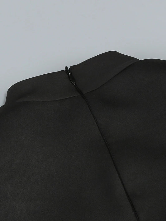 Luxelink™ Chain Patchwork Mini Dress – Deep V-Neck, High Waist Elegance with Slimming Fit and Long Sleeves