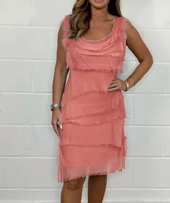 Step into summer with confidence in the Summer A-Line Mini Dress, designed to bring breezy elegance and playful charm to your warm-weather wardrobe. With its sleeveless cut, flattering high waist, and soft-flowing silhouette, this solid-color stunner hugs in all the right places while offering all-day comfort. The tassel detailing adds a touch of movement and boho-chic flair, making it perfect for beach strolls, brunch dates, or sunny day getaways.